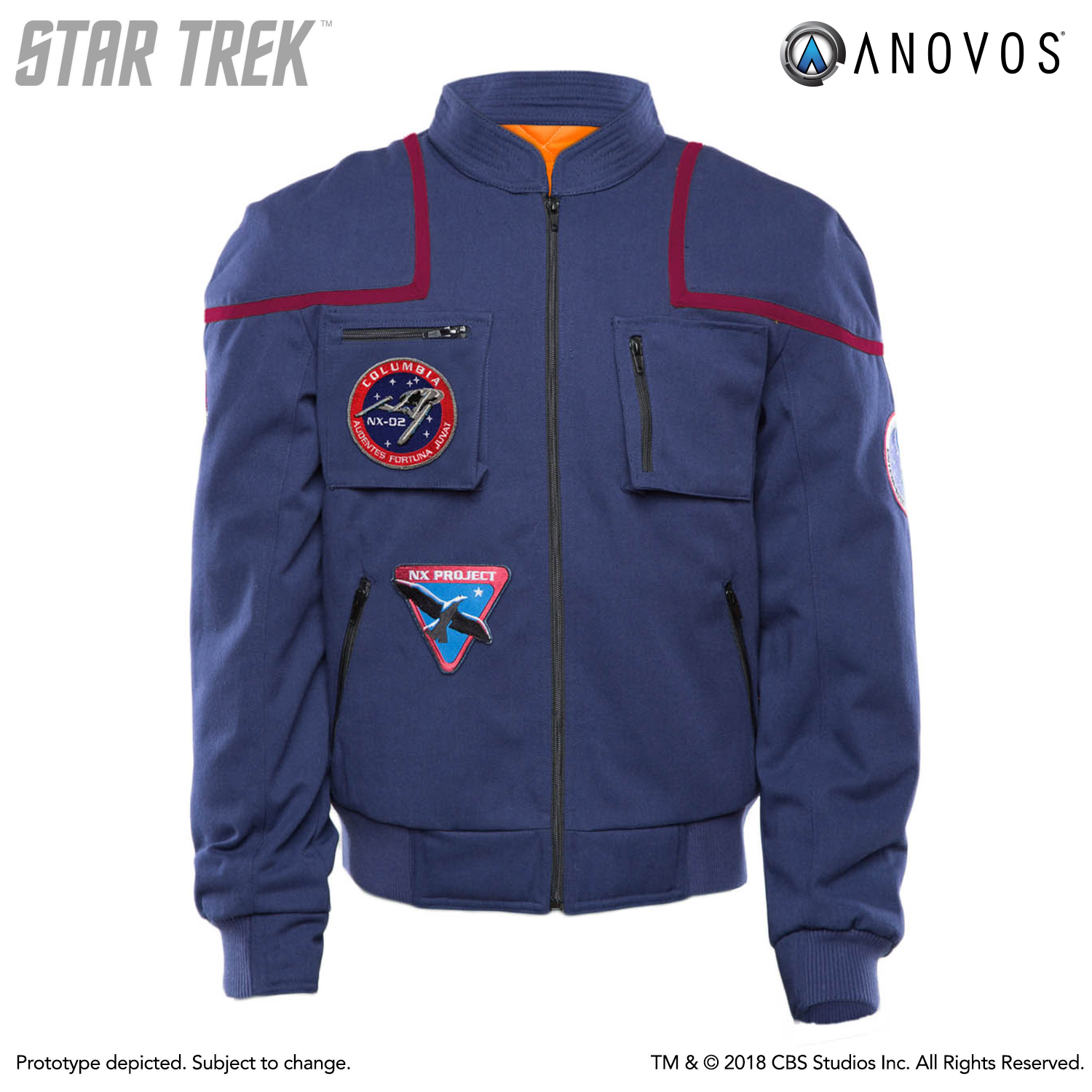 Designed with the invaluable assistance of Star Trek Art Department's Mike Okuda and Doug Drexler, and inspired from the Enterprise jumpsuit created by Star Trek Costume Designer Robert Blackman, the jacket features the look and feel of an authentic Starfleet uniform prior to the founding of the United Federation of Planets.