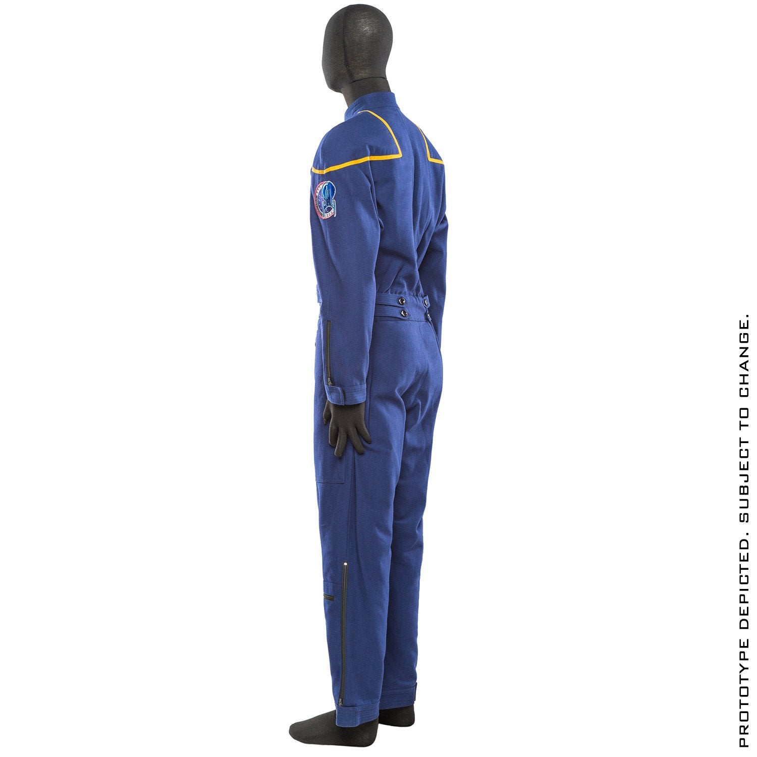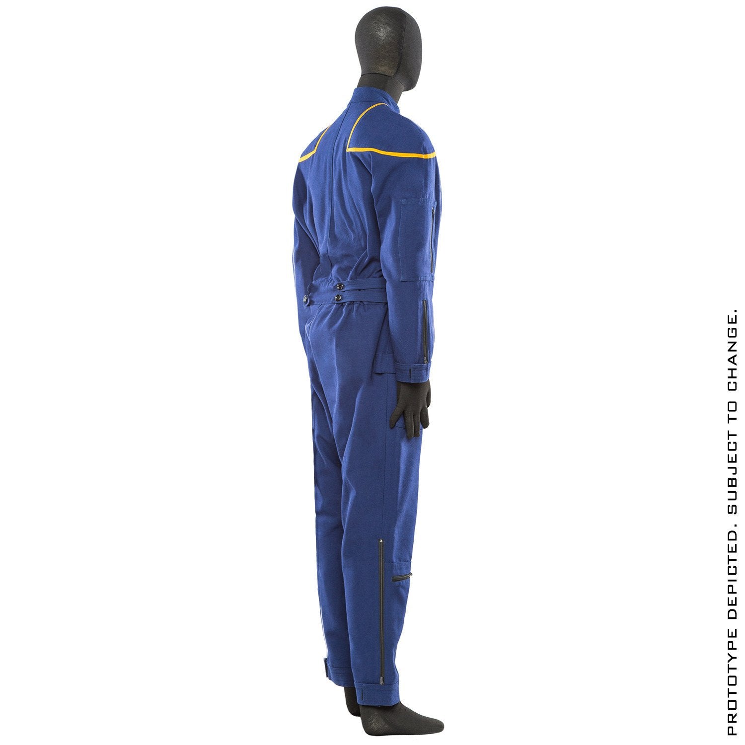 Replicated from screen-used and production sources, each jumpsuit features functional pockets with zippers and features built-in elastic at the waist to adjust, as well as equipment loops for holsters at the right leg. (Feature can be transposed to other leg by end-user's tailor.)