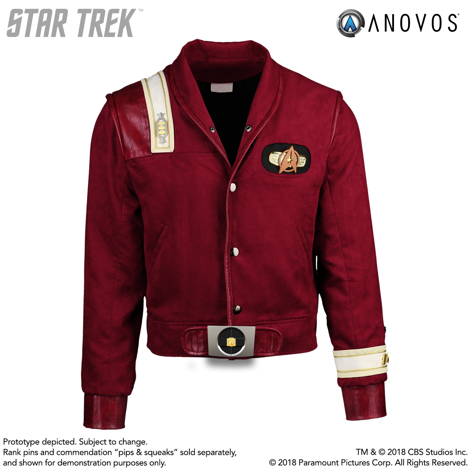 In the vein of the "Green Wrap" uniform options worn by Kirk on his first five-year mission, this Captain's Bomber Jacket is a varsity-style command-casual uniform top worn by commissioned Captains in Starfleet.
