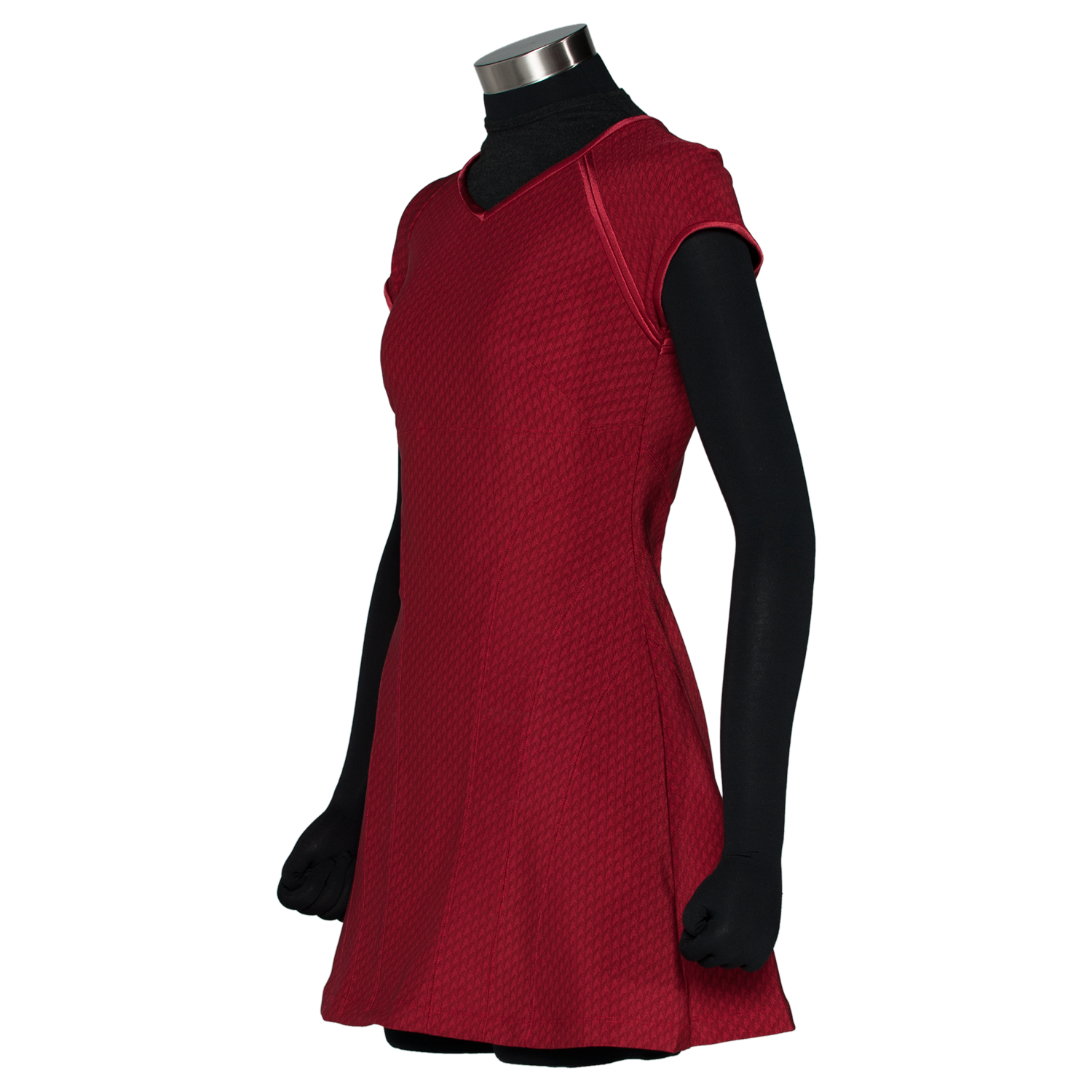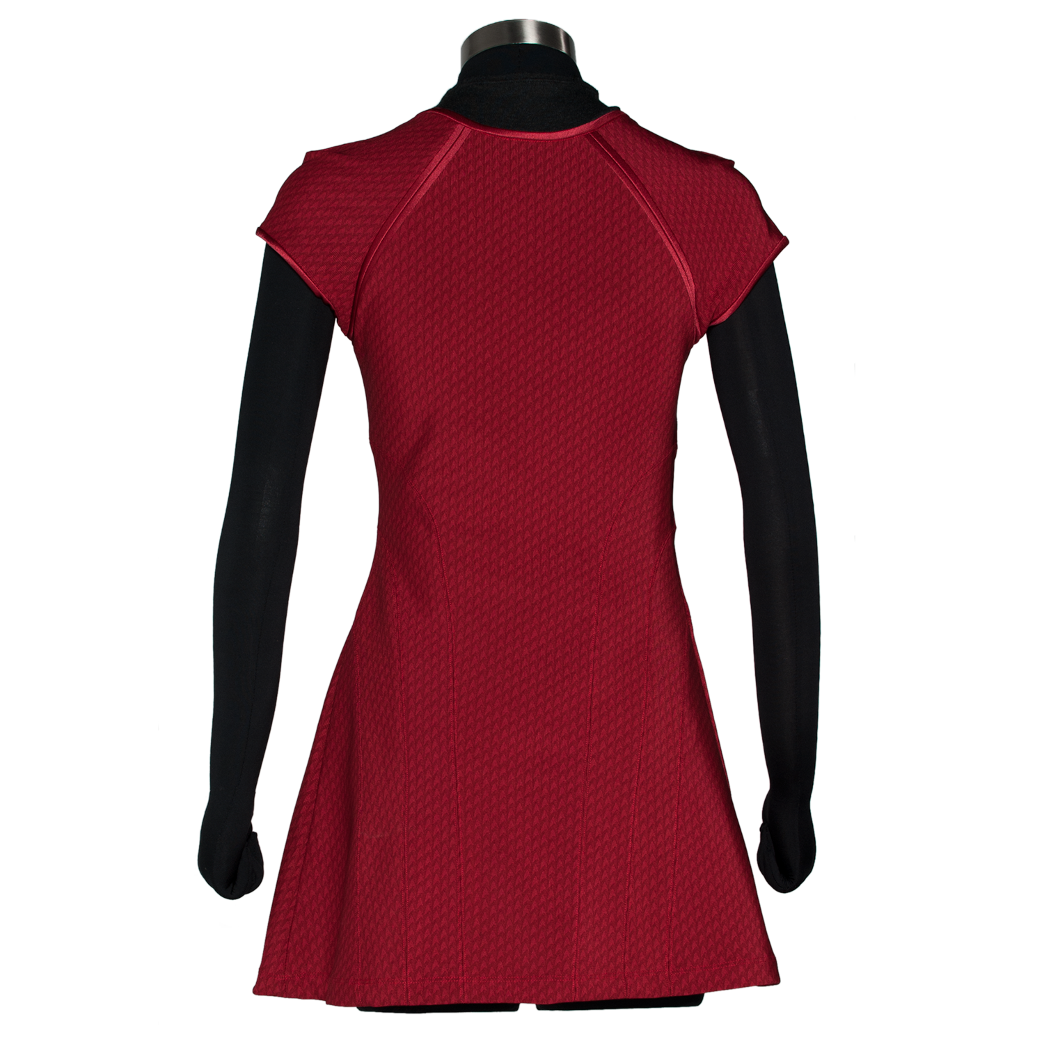 Faithful replica of the dress worn in the Star Trek™ movies directed by J.J. Abrams. Replicated using patterns from screen-used uniforms, dresses are made of Jumbo Spandex featuring intricate Starfleet delta pattern that is printed and dyed to match coloring used by production. Cap sleeves as worn by Uhura.