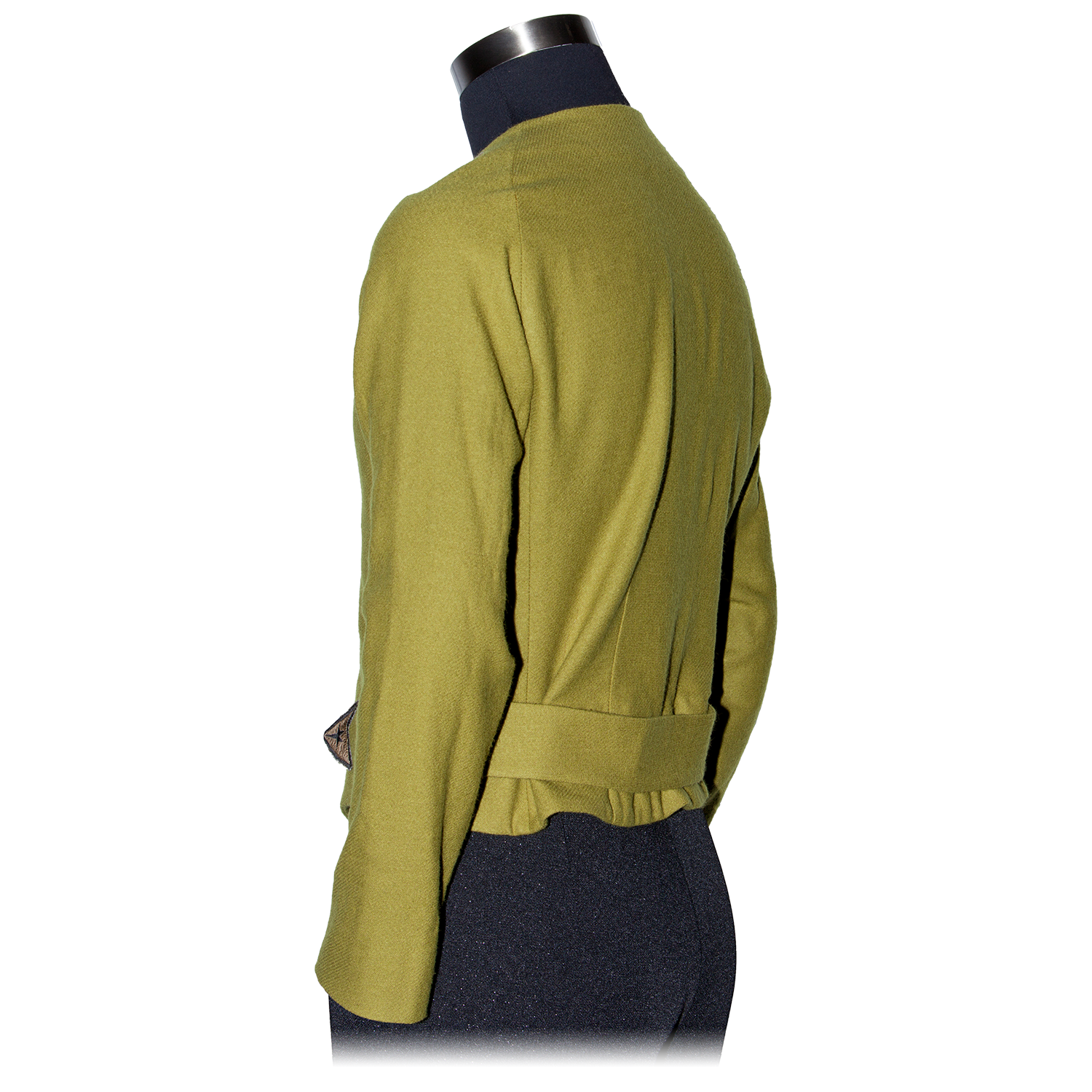 - Fabric is custom-milled and dyed wool crepe that matches the original surviving, well-preserved fabric sample from original production.