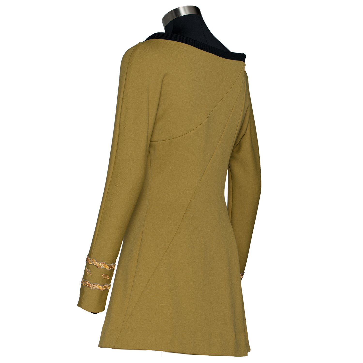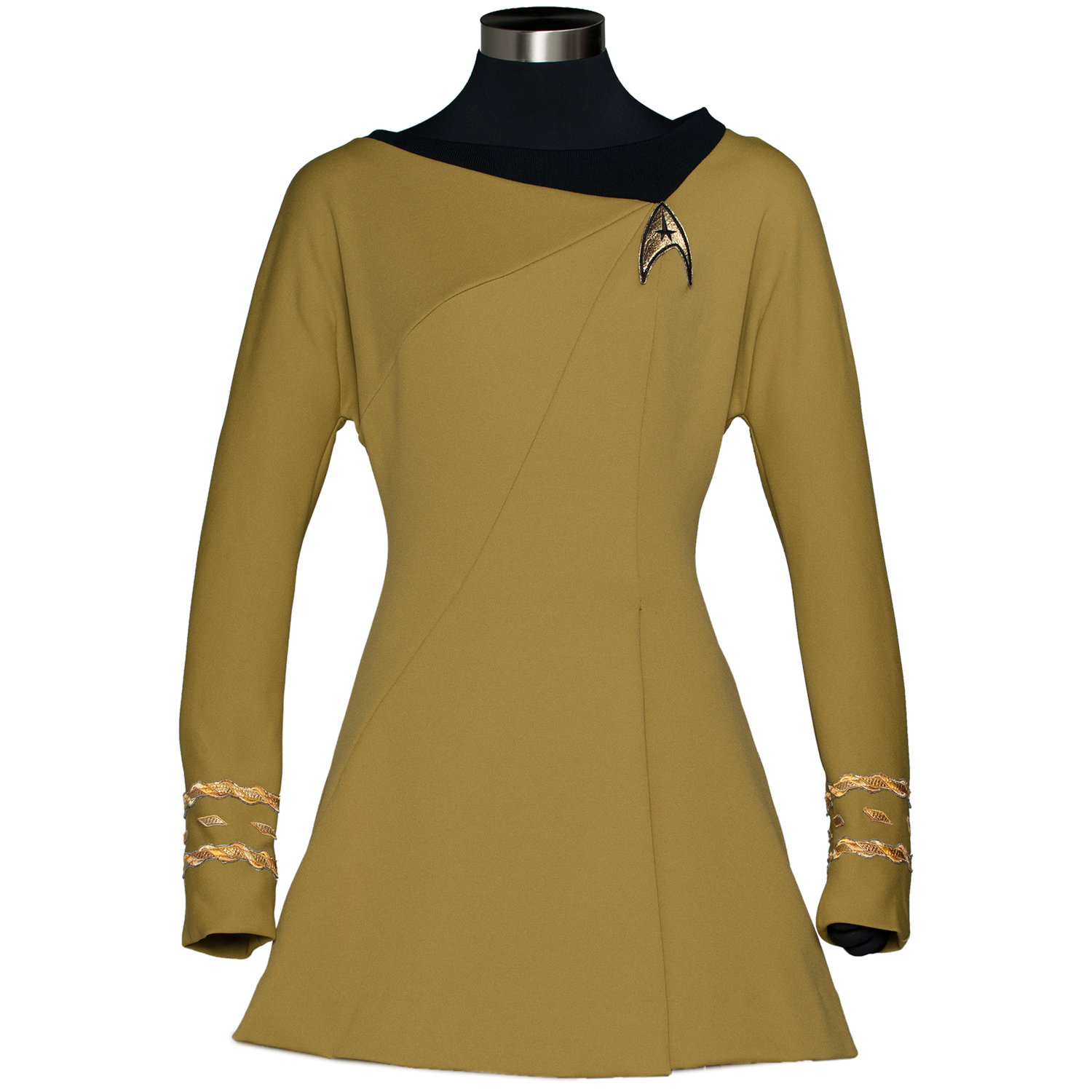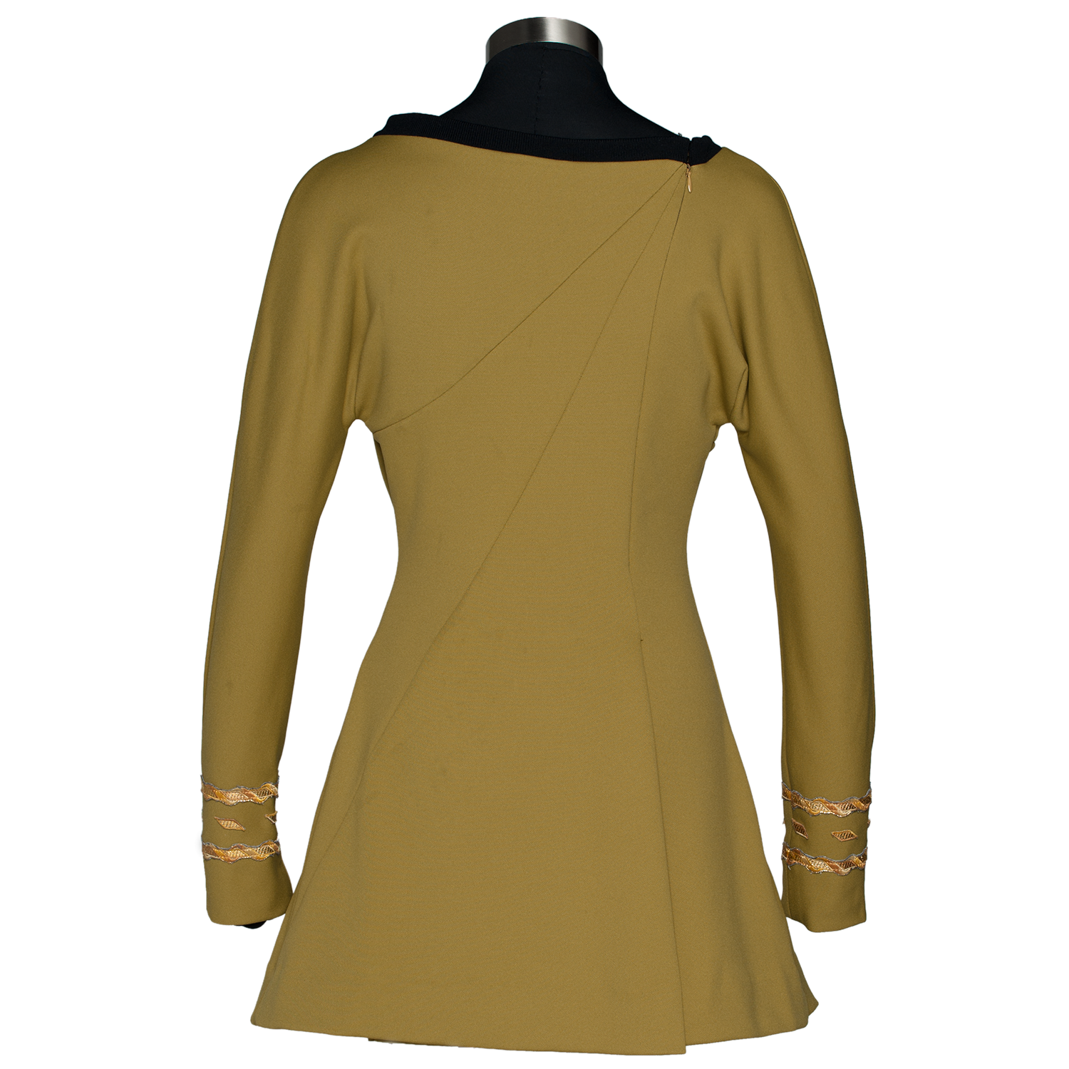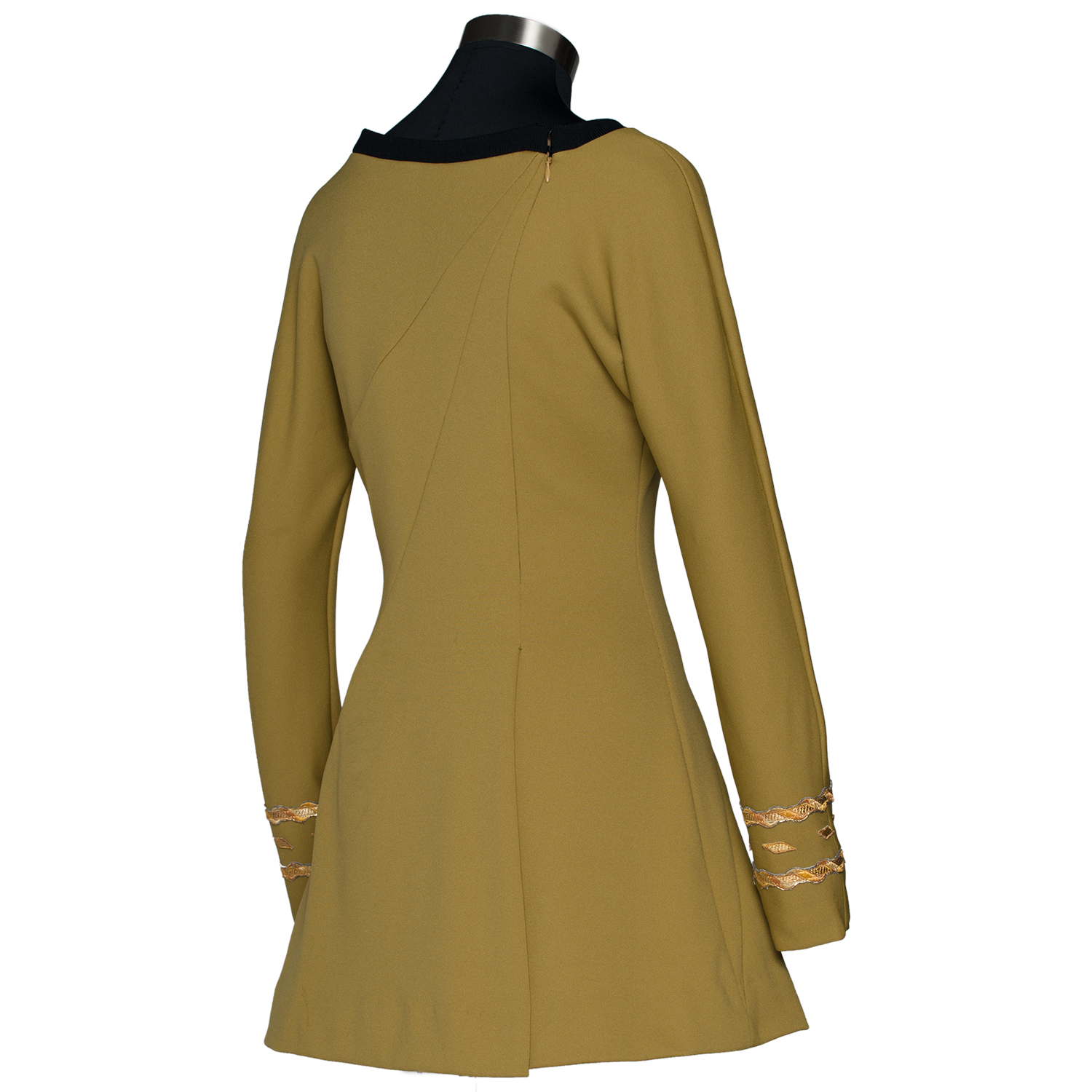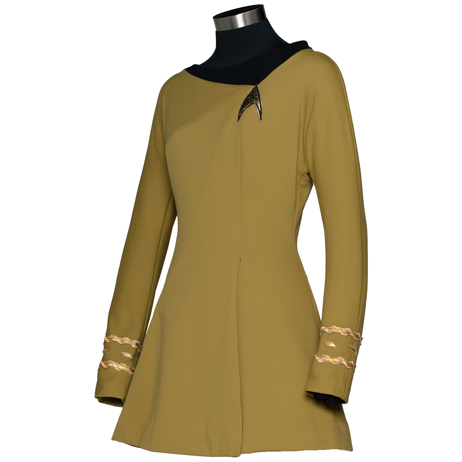 This dress is available in the Captain style with Captain rank braid, and features the Command Division Delta Shield Enterprise patch. Featuring the exact double-knit fabric from the original uniforms, and fabric dyed to match screen-used fabric samples, this dress is lovingly crafted as a tribute to the Original Series. Own a piece of retro nostalgia with this exclusive replica.