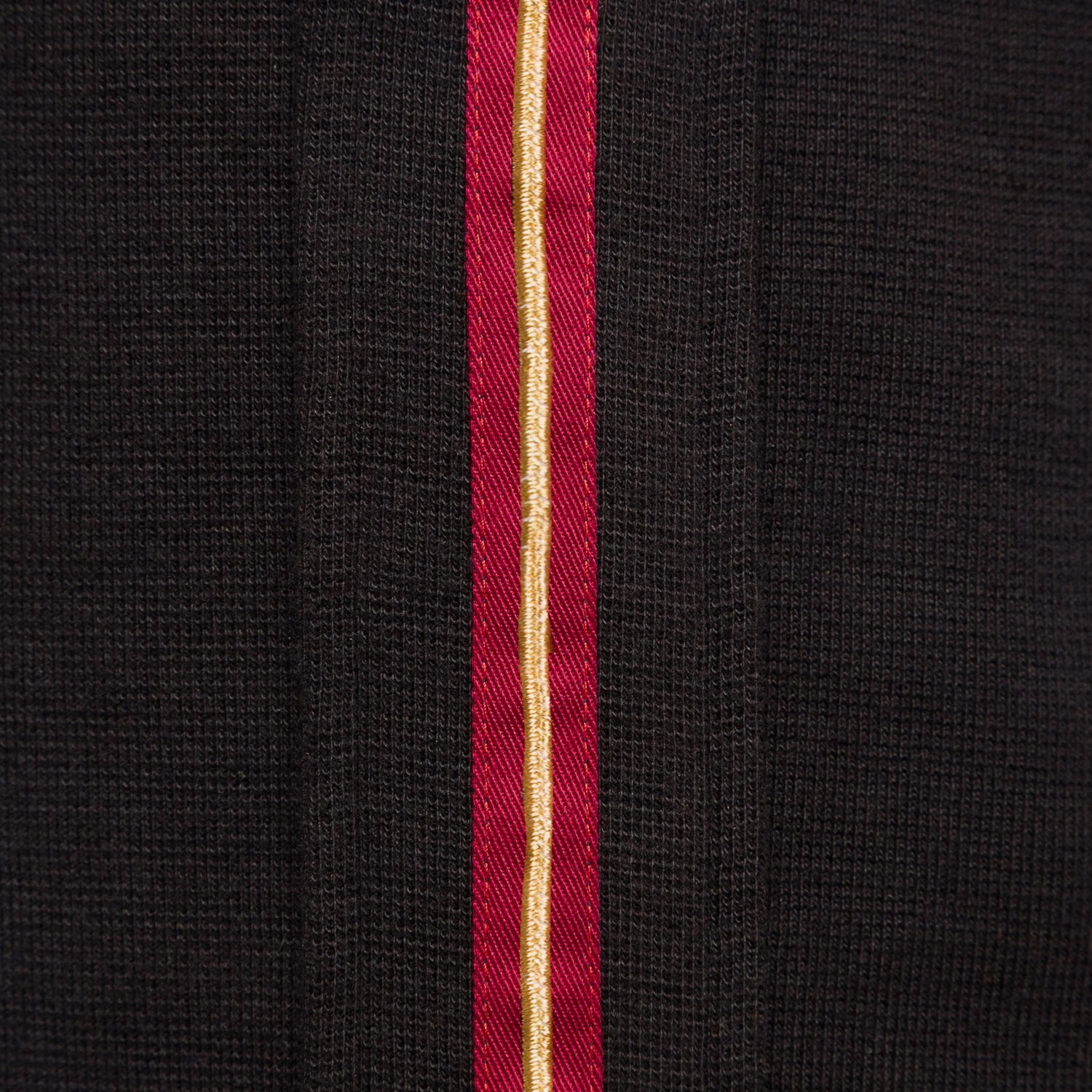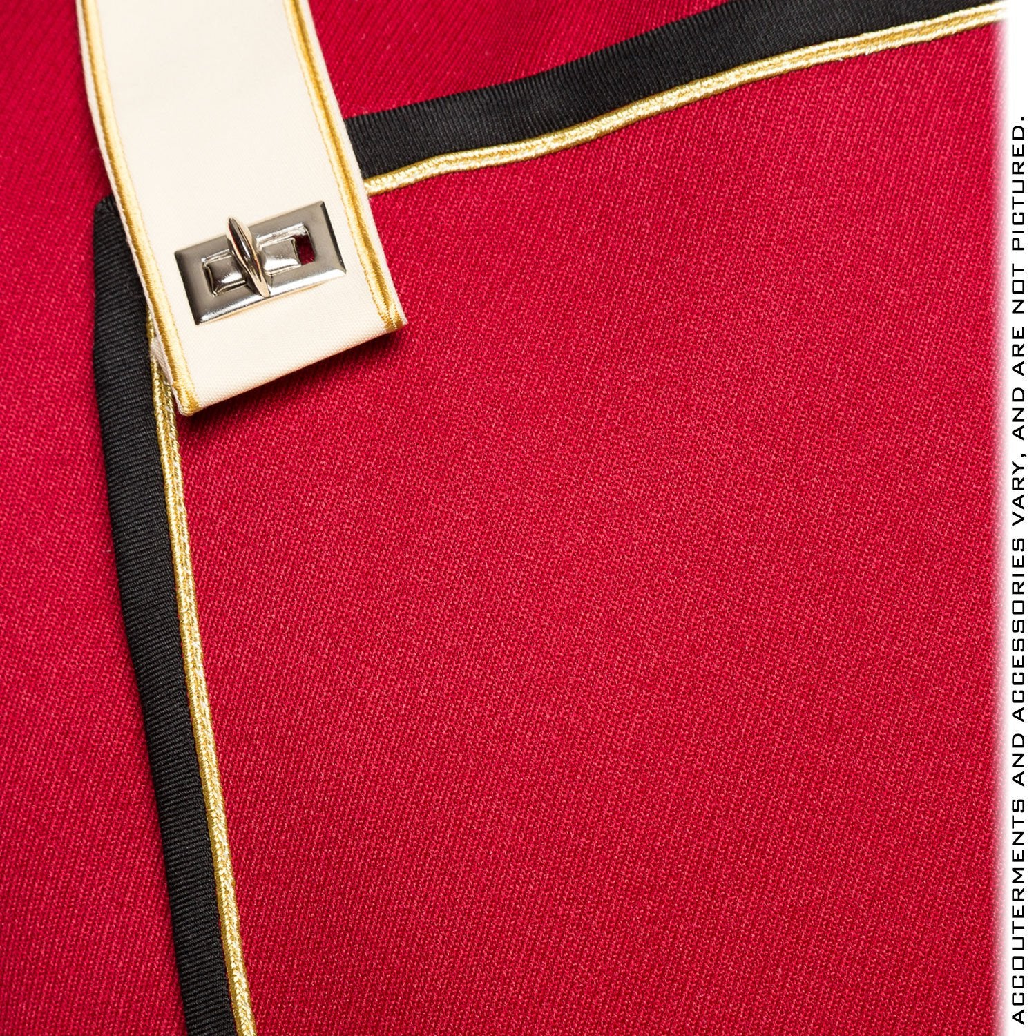 This uniform uses a custom milled and dyed cavalry twill that replicates both the look and feel of the original uniform’s wool élastique, while being more comfortable, durable, and cost effective. We also added the correct gold soutache trim on the jacket and pant to signify a Flag Officer of Admiral Kirk’s rank, as well as the distinctive black and gold check (Rear Admiral) ribbon to the left arm as only seen in The Wrath of Khan. Lastly, we recreated the Officer’s Chest Insignia, rank accouterments, and lapel chain using original screen-used physical reference. Thus creating the most accurate representation of rank, badges, and chain without the distortions of time from mould shrinkage or interpretation. Every detail was scrutinized and sourced to provide you our most exacting uniform to date.