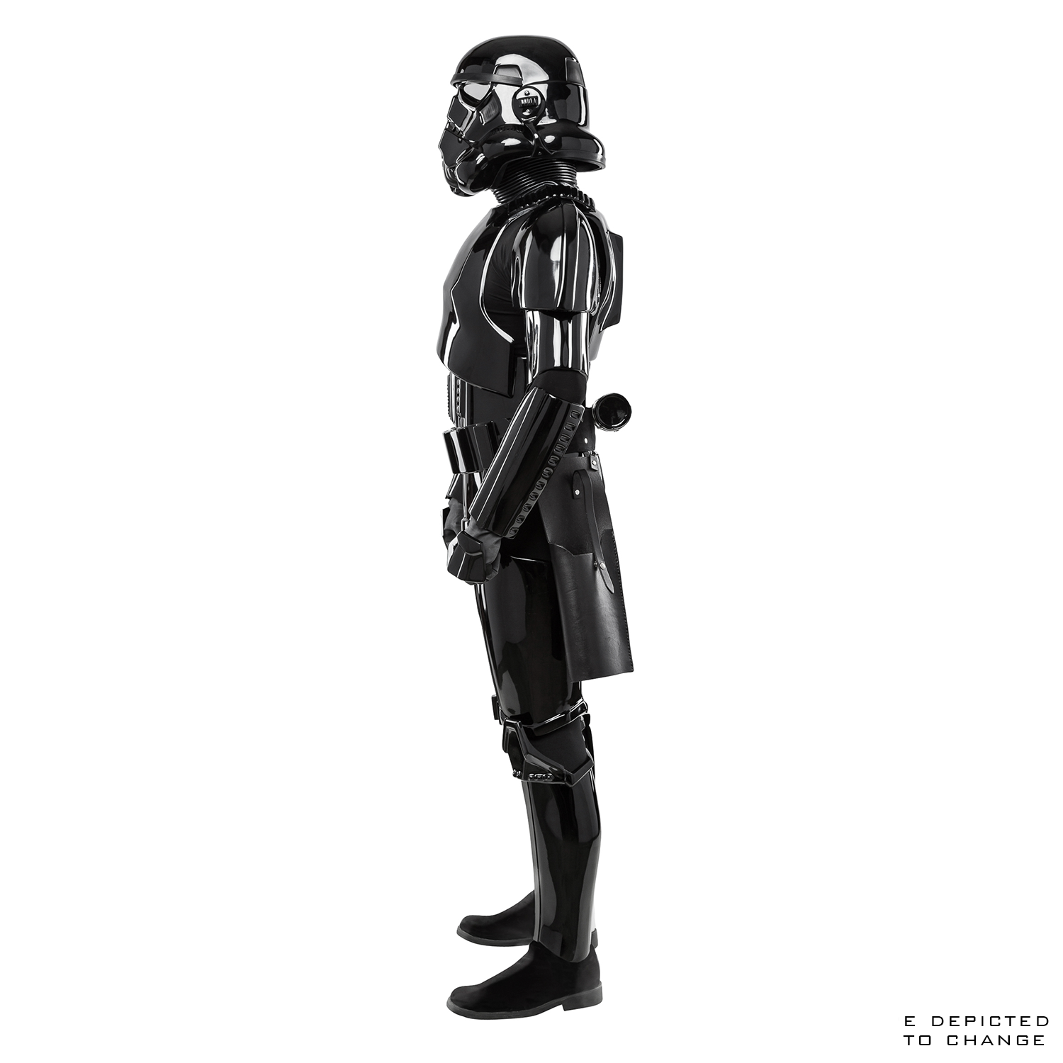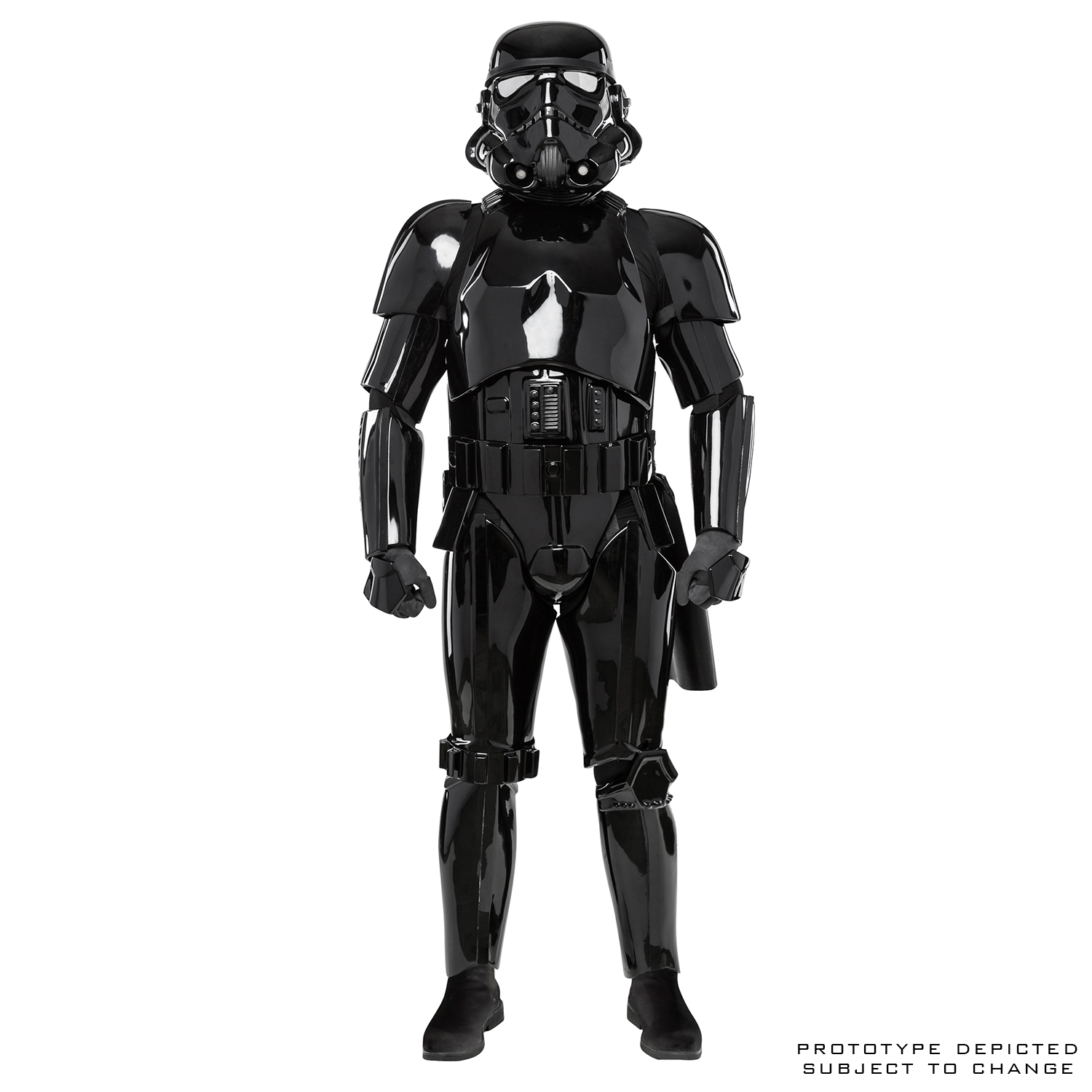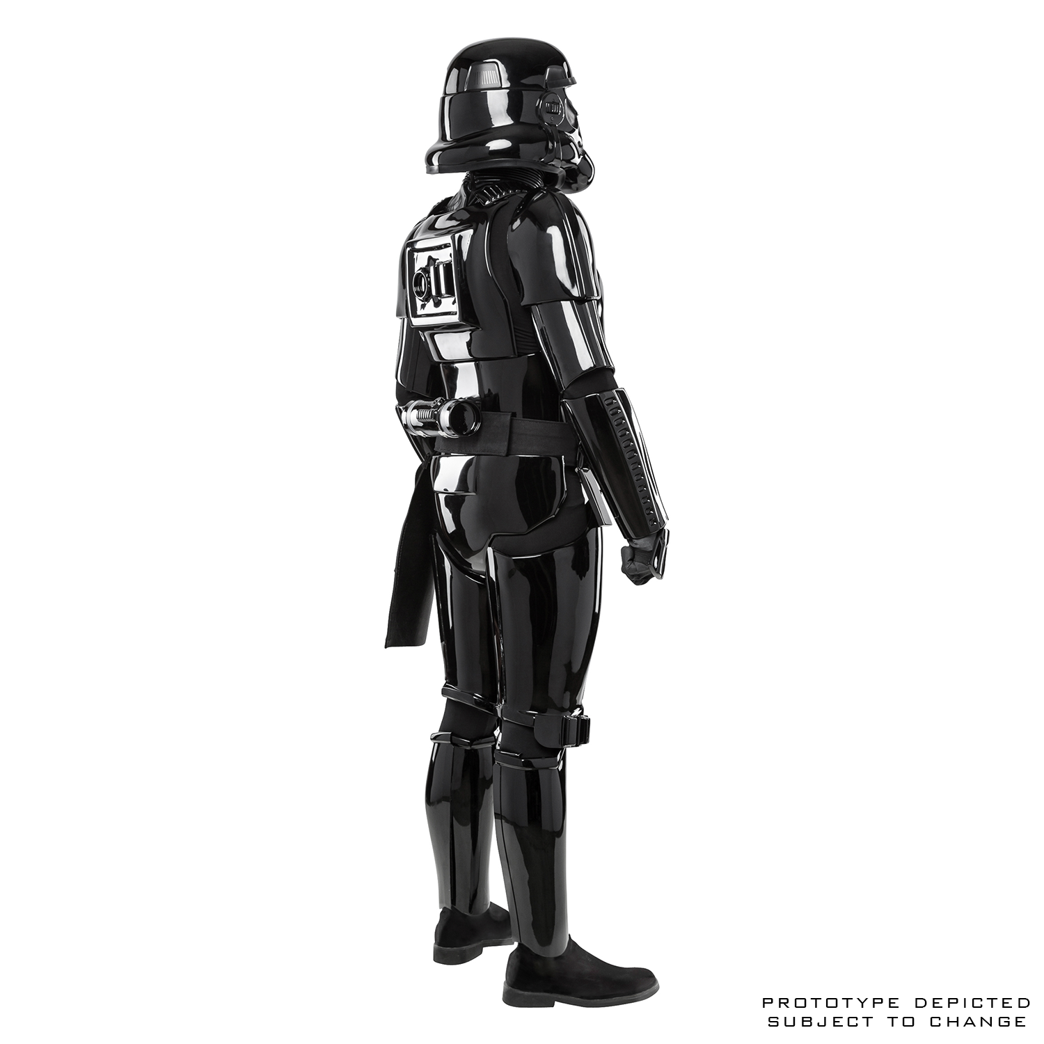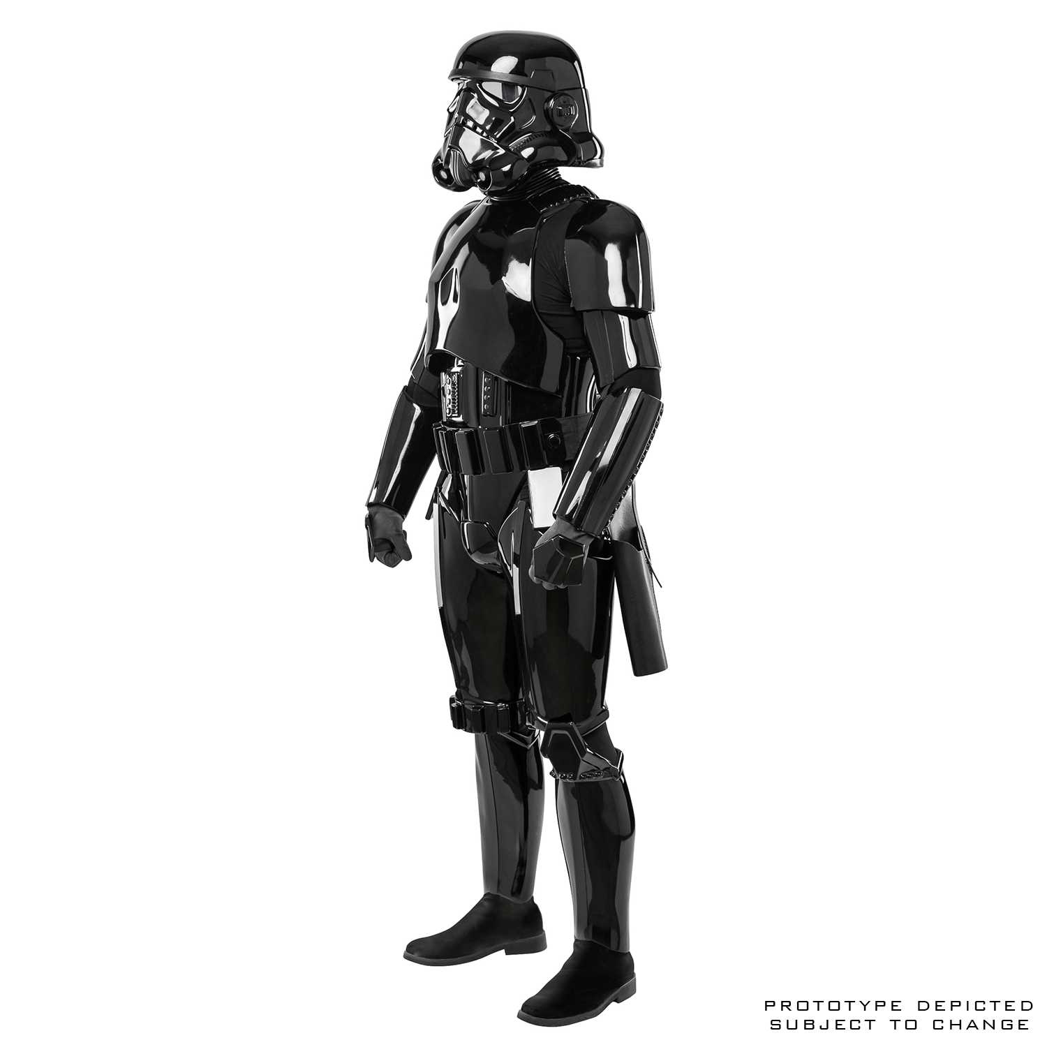 - Black ABS plastic armor pieces are crafted from semi-idealized sculpts, with key features replicating the nuances of the original Stormtrooper costumes.